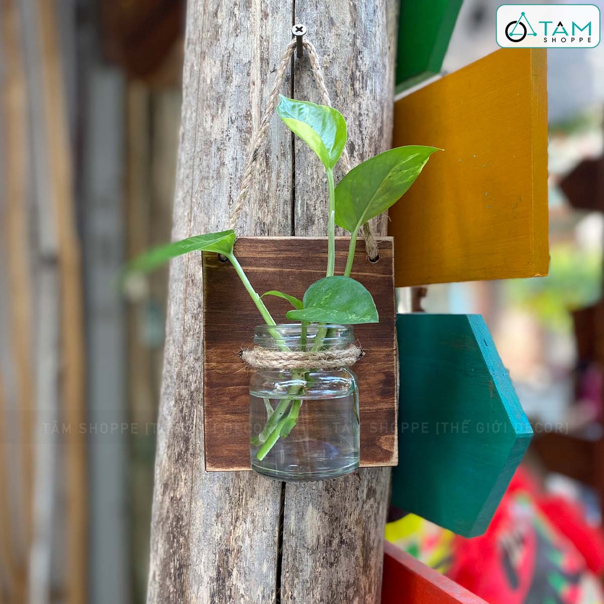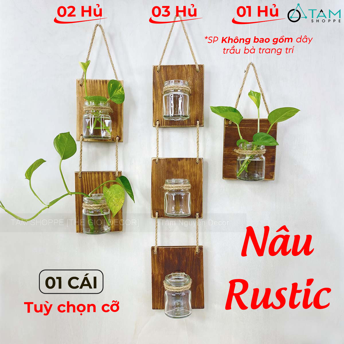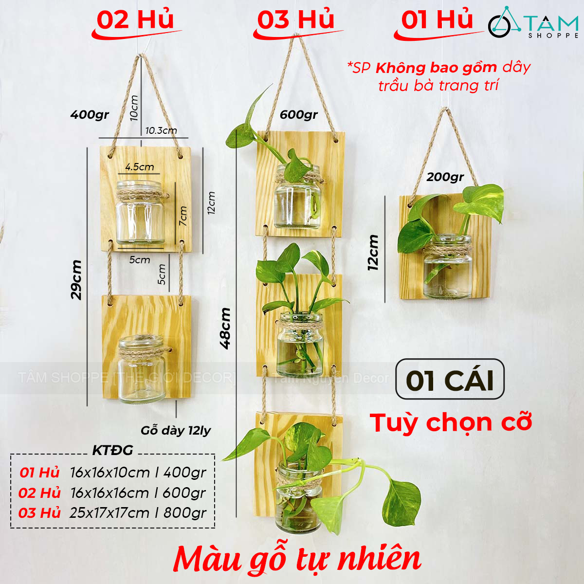 Tấm gỗ lọ thủy tinh treo tường thủy canh nhiều tầng [2 màu - 3 Size] trang trí đẹp mắt.