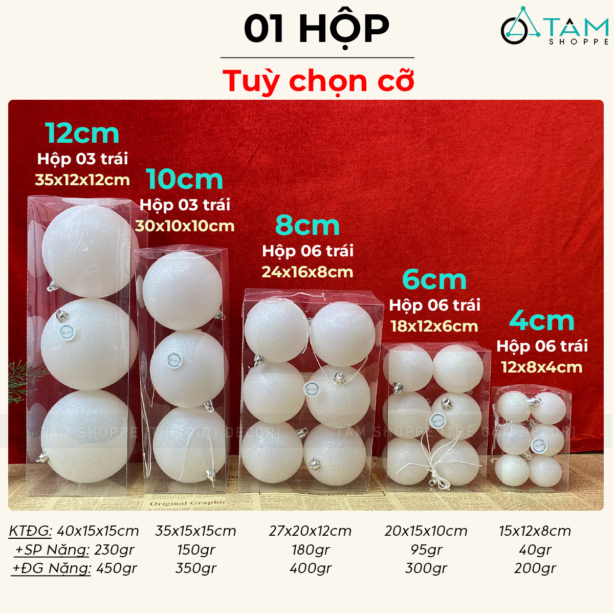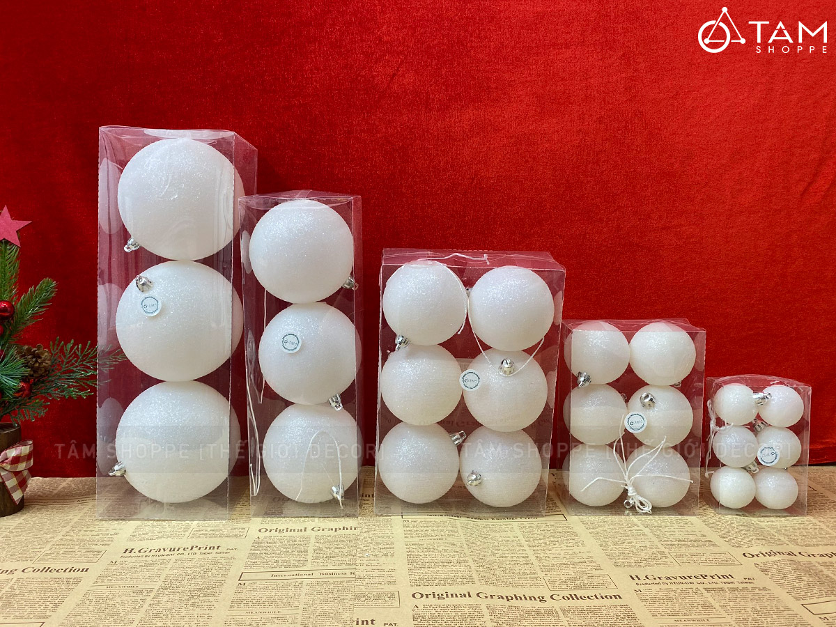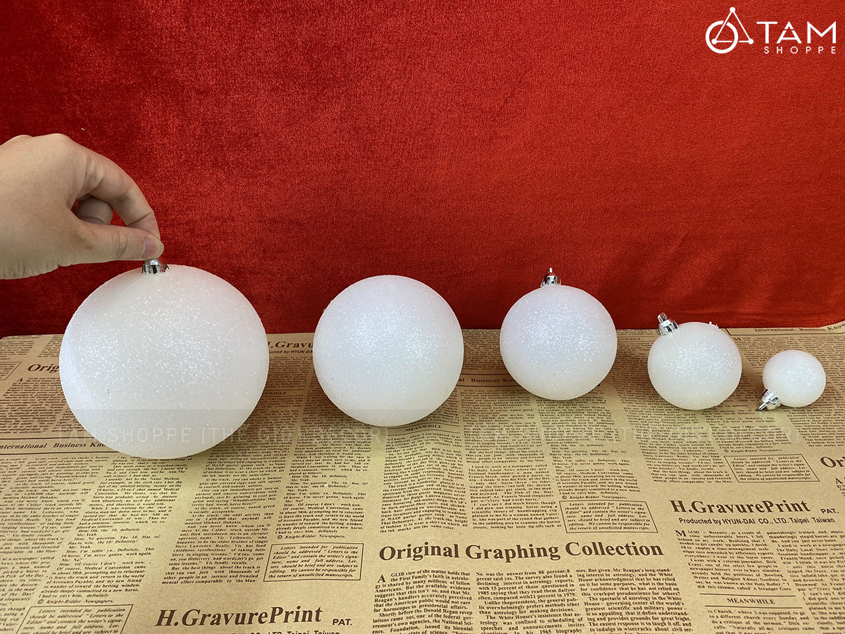 Trái châu Noel xà cừ Trắng kim tuyến lấp lánh nhiều cỡ [Từ 4 -12cm - Hàng chuẩn] trang trí đẹp mắt