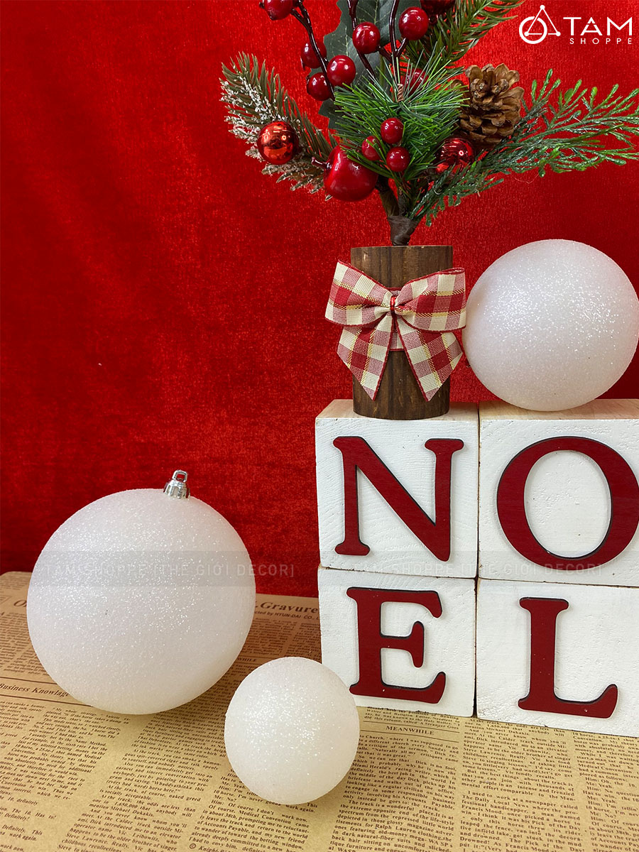 Trái châu Noel xà cừ Trắng kim tuyến lấp lánh nhiều cỡ [Từ 4 -12cm - Hàng chuẩn] trang trí đẹp mắt. Đồ trang trí Noel là các vật dụng, phụ kiện, hoặc mô hình được dùng để trang hoàng không gian trong dịp Giáng Sinh (Noel), nhằm tạo nên không khí ấm áp, vui tươi và mang đậm sắc màu lễ hội.