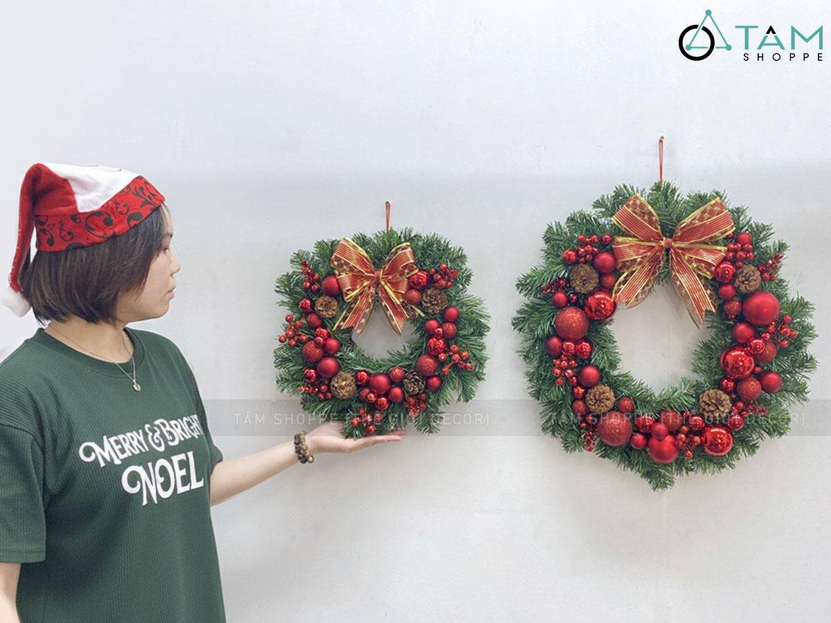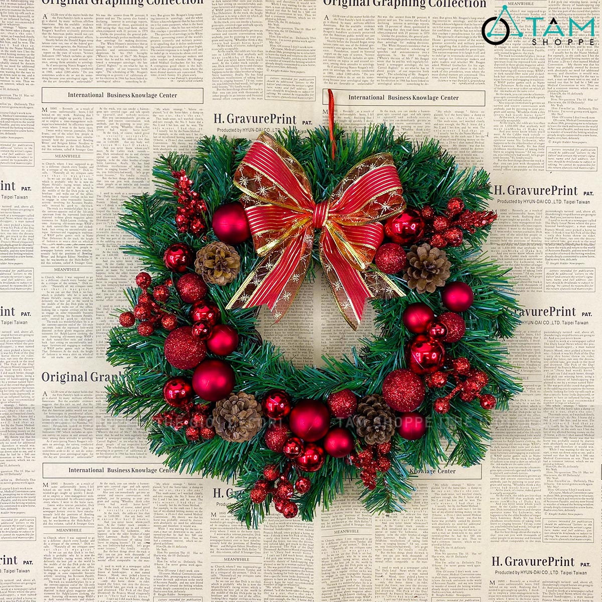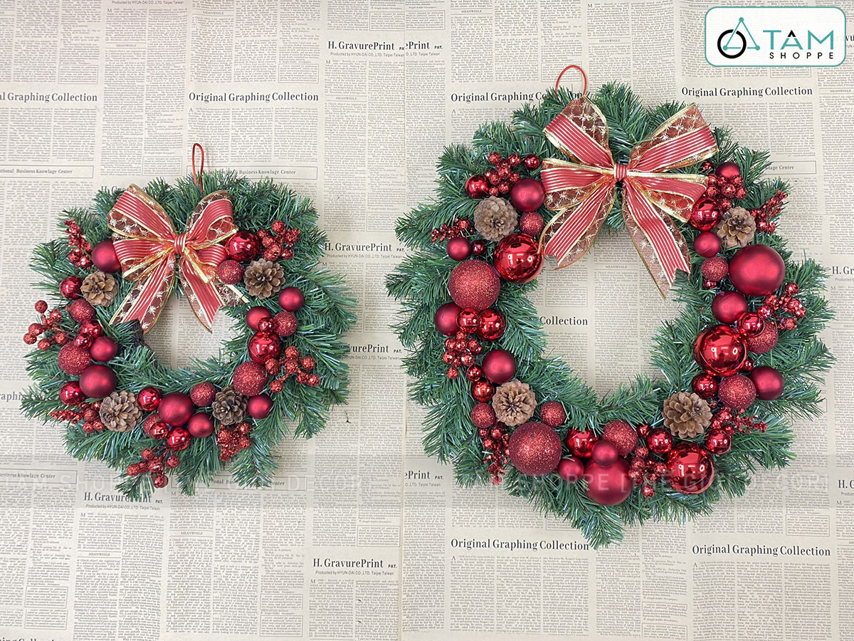 Vòng nguyệt quế Noel nhiều châu ĐK 40 - 55cm [Cổ điển - 3 màu] trang trí đẹp mắt