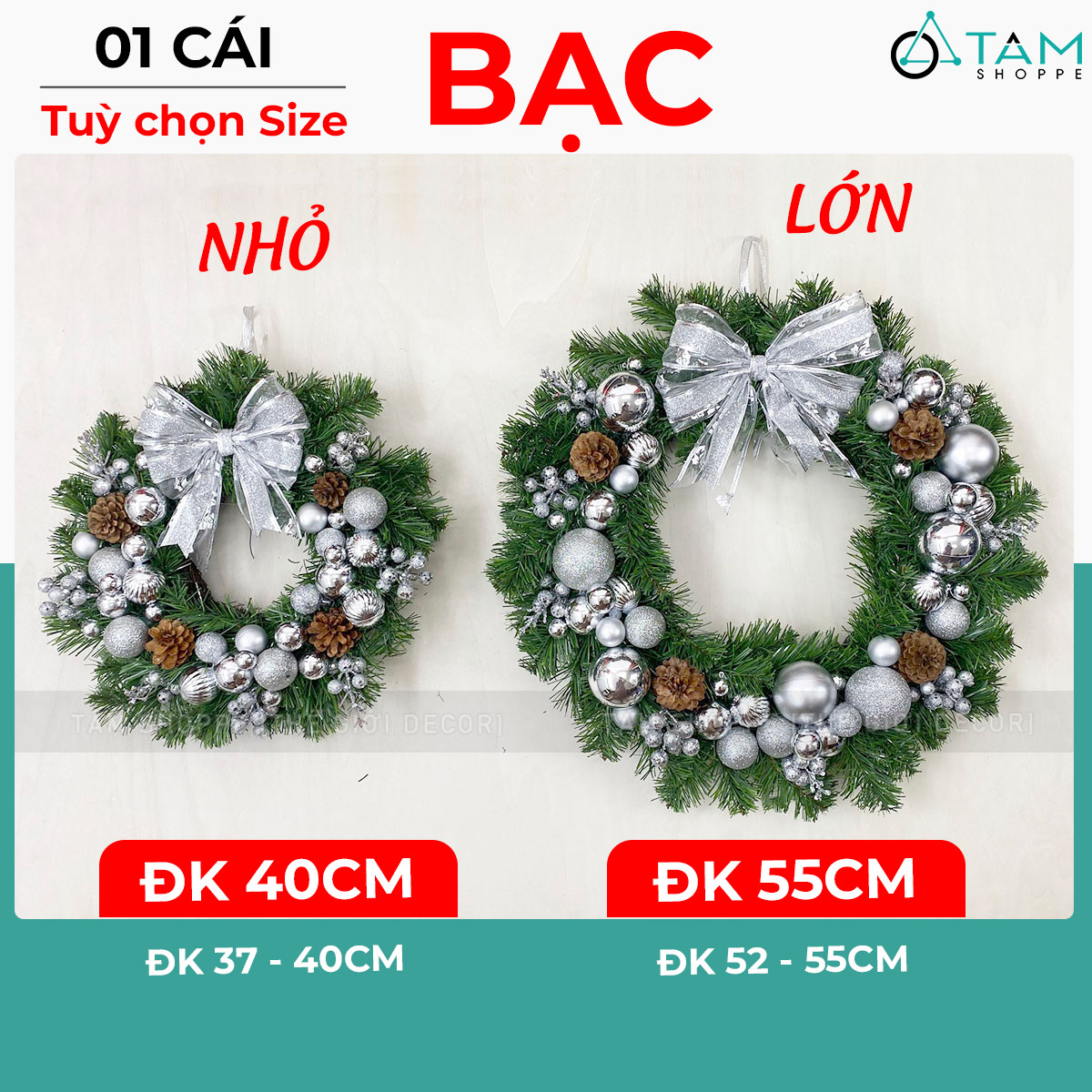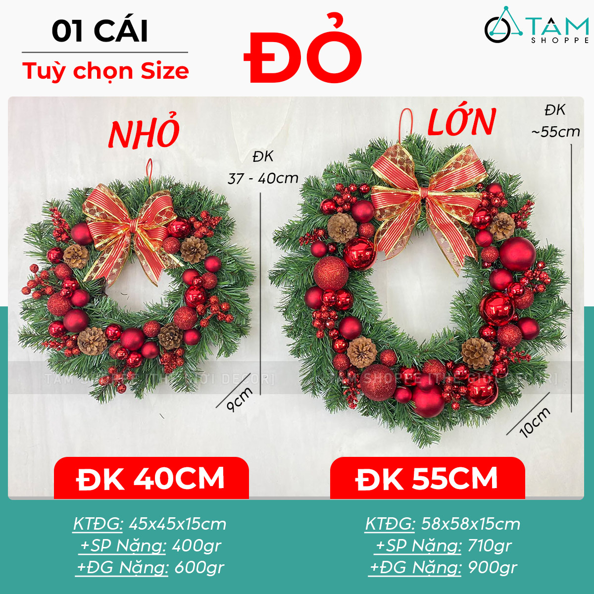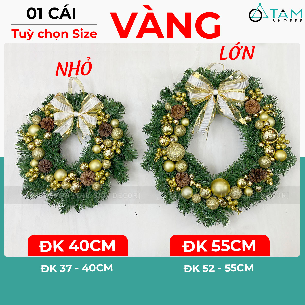 Vòng nguyệt quế Noel nhiều châu ĐK 40 - 55cm [Cổ điển - 3 màu] trang trí đẹp mắt